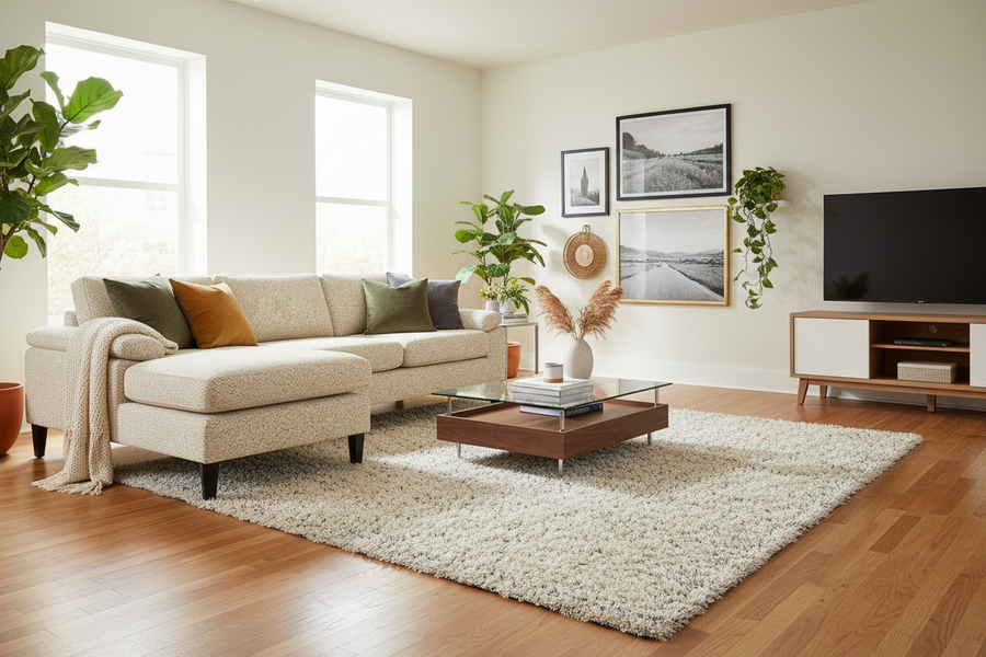Add personality and warmth with cushions, rugs, curtains, wall décor, lamps, planters, and decorative accents that complete your home.