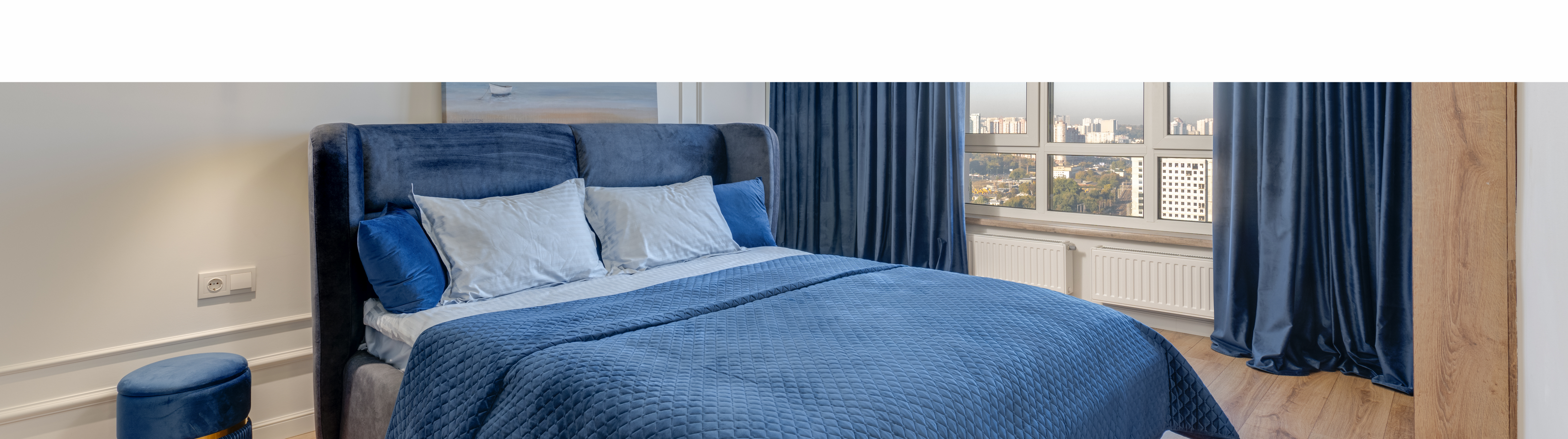 Basi Fabric Upholstered Queen Size Bed In Royal Blue Colour