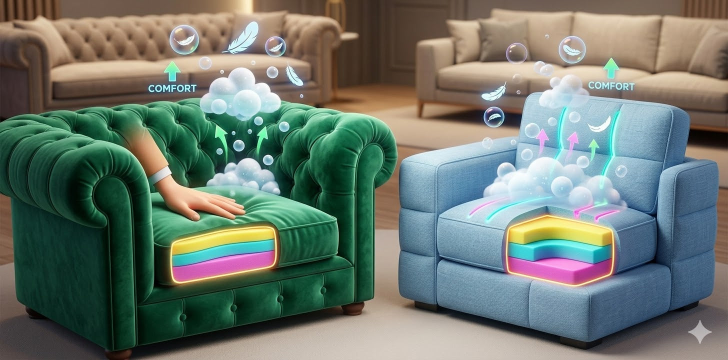 Designed for comfort and relaxation. Requires more space but offers superior comfort.