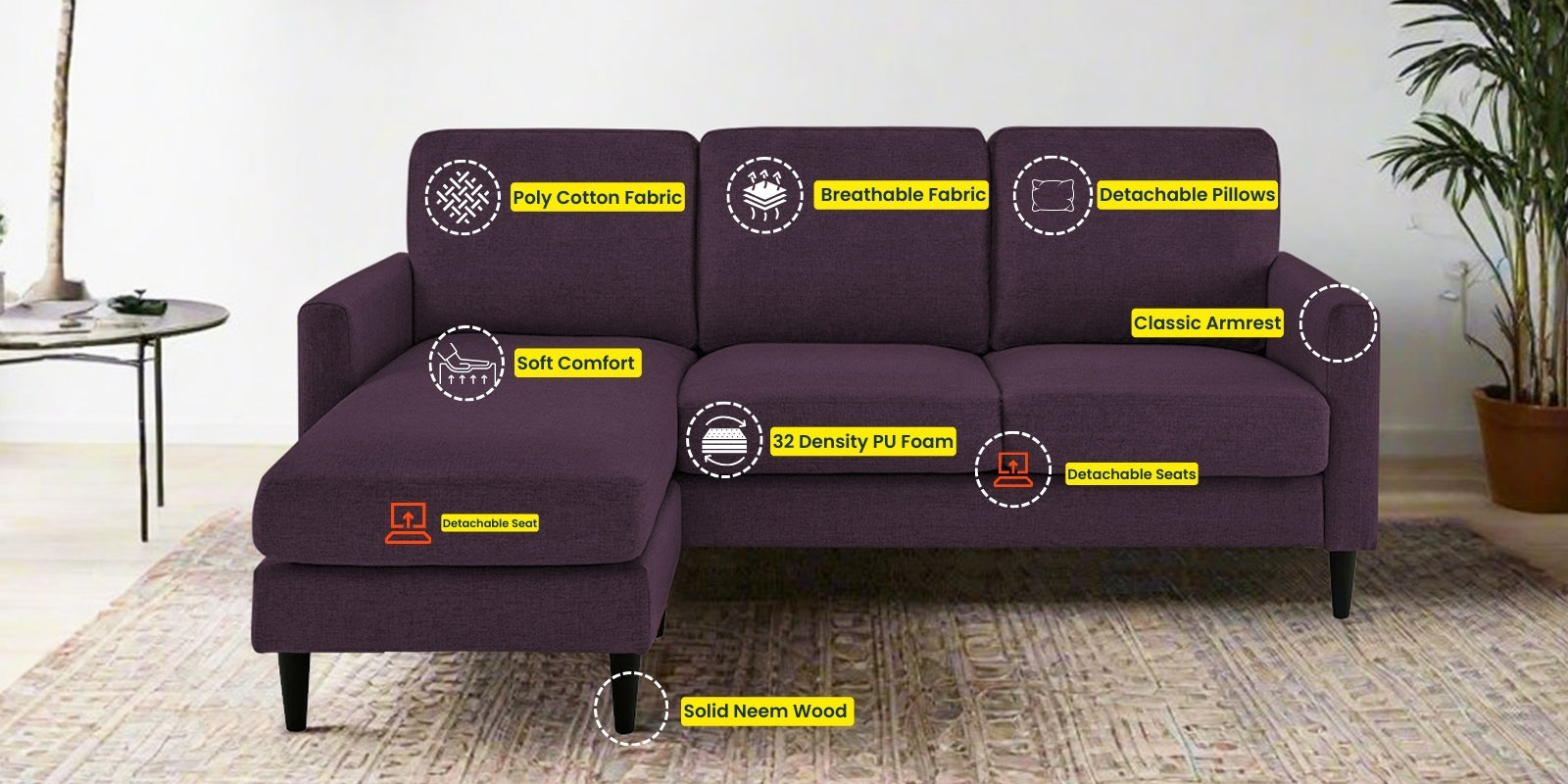 - Design Style: Modular layout with plush fabric finish