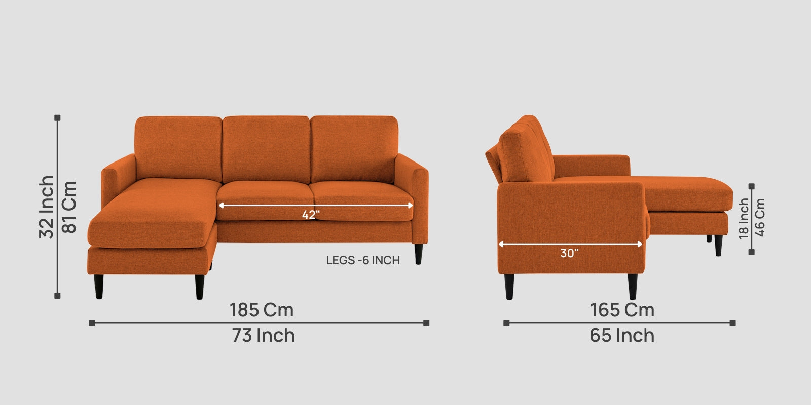 Romie Fabric RHS Sectional Sofa (2+Lounger) In Vivid Orange Colour