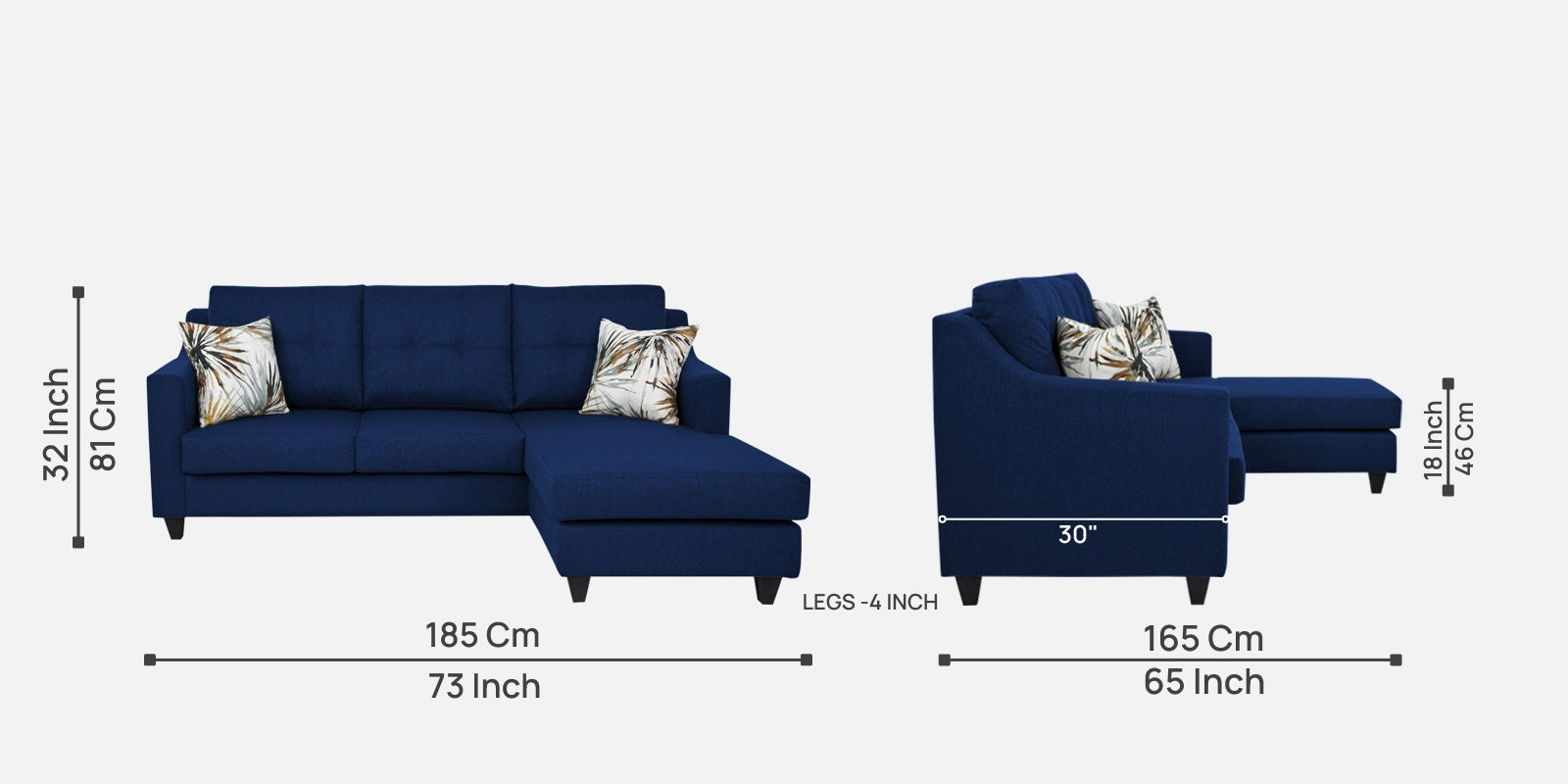 Welly Fabric LHS Sectional Sofa (2+Lounger) In Royal Blue Colour